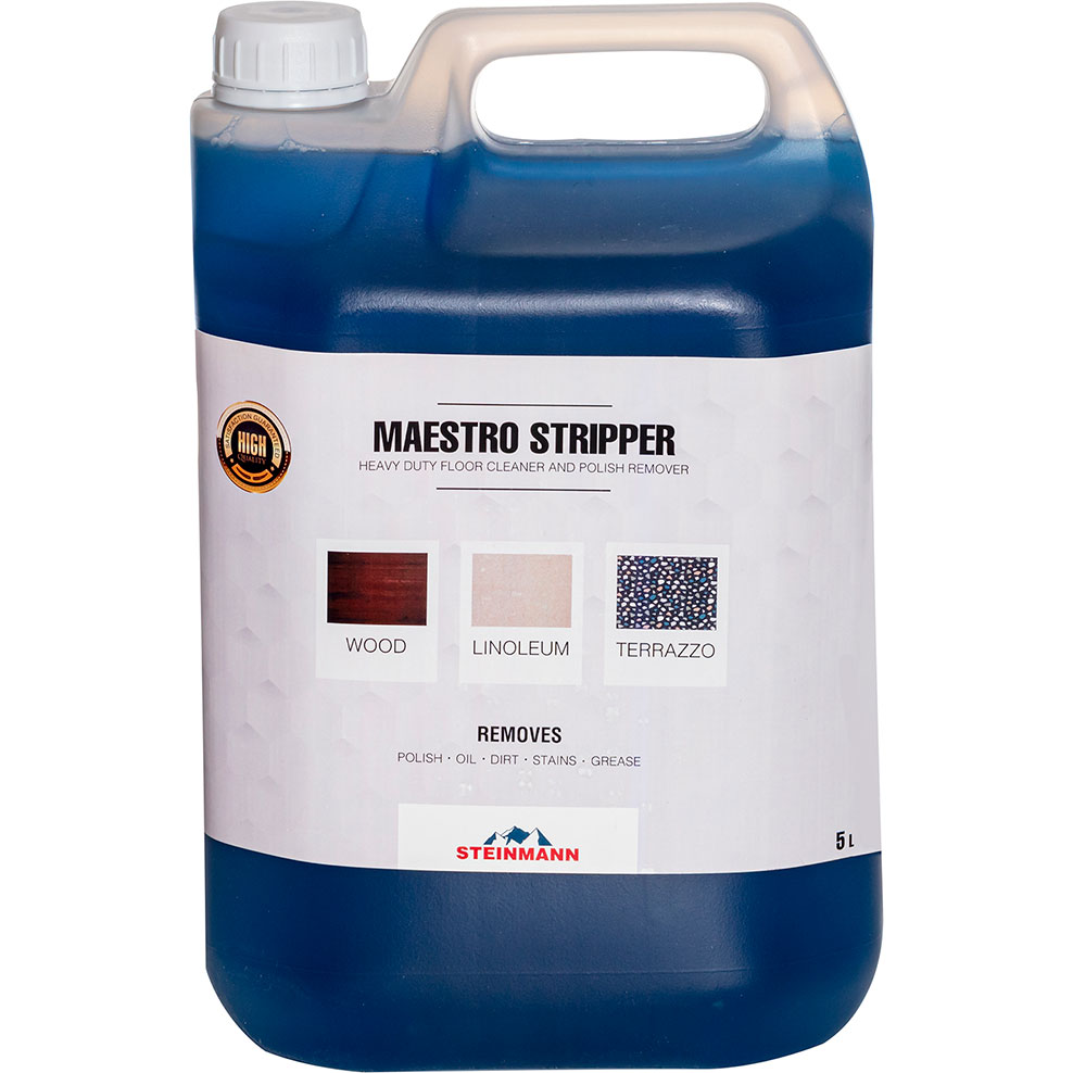 Maestro Stripper este soluția profesională esențială pentru îndepărtarea eficientă a straturilor vechi de ceară și polish de pe pardoseli.