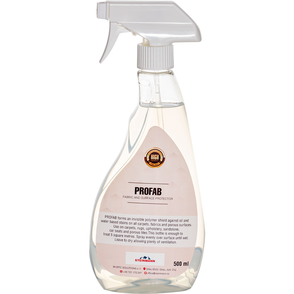 PROFAB este soluția inteligentă pentru a proteja textilele împotriva petelor și lichidelor nedorite. Ideal pentru locuințe, birouri sau spații comerciale, creează un strat invizibil care respinge umezeala și păstrează materialele impecabile.